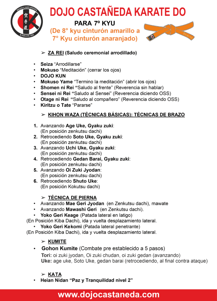 Mi paso para el 7mo Kyu Karate Do Shotokan (Cinturón anaranjado)