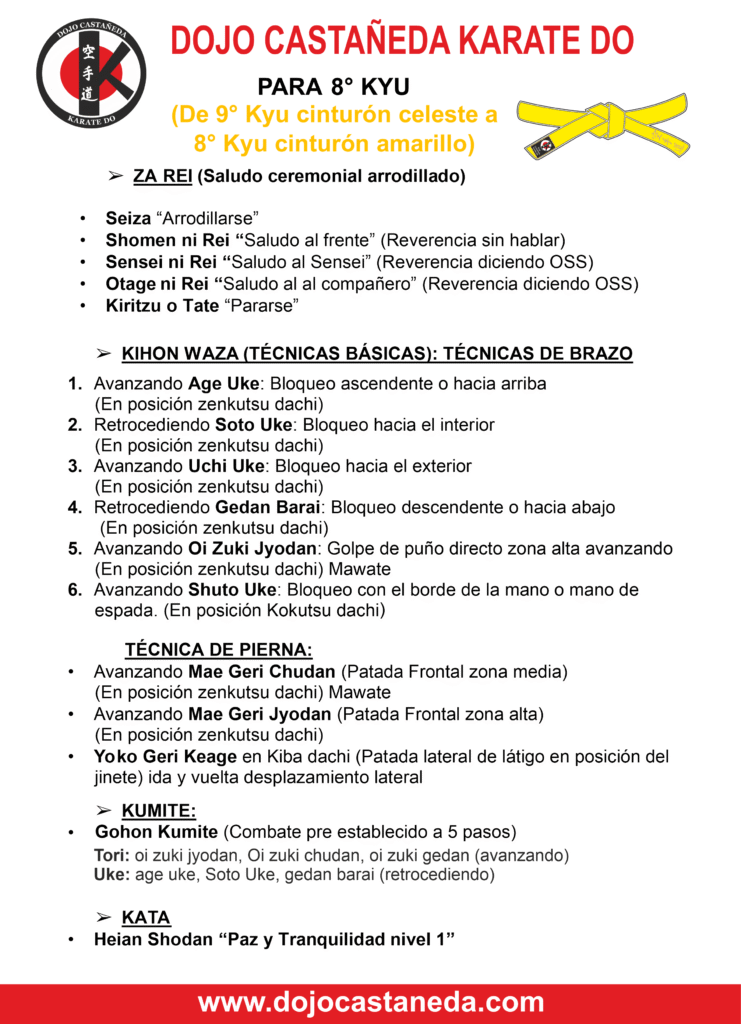 8º Kyu CINTURÓN AMARILLO: Kiiro no「黄色の」